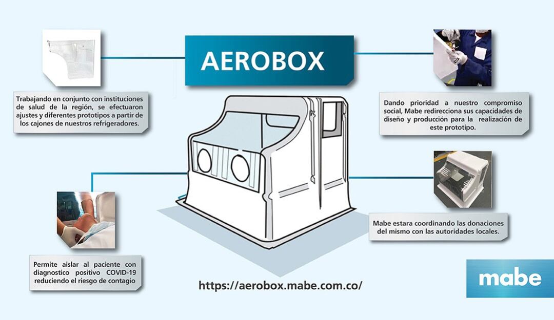El fabricante de electrodomésticos, Mabe donará 6.000 cápsulas para proteger al personal que trabaja en entidades de salud en Colombia. La empresa modificó partes de neveras para diseñar una cabina, llamada Aerobox, que protege a los profesionales de la salud en los procedimientos a personas con Coronavirus.