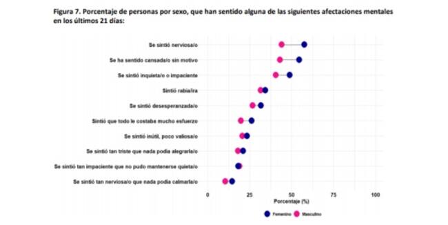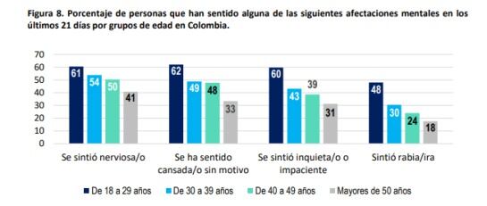 "Los jóvenes entre los 18 y 29 años son los que han estado más expuestos emocionalmente a los efectos de la pandemia. Muchos declaran nerviosismo, cansancio sin motivo, incluso ira. Además, que, el 59% de estos jóvenes que está sufriendo muchas alteraciones a su salud mental, gana menos de 1 millón de pesos", reveló Juan Carlos Rivillas director de Investigaciones de Profamilia.