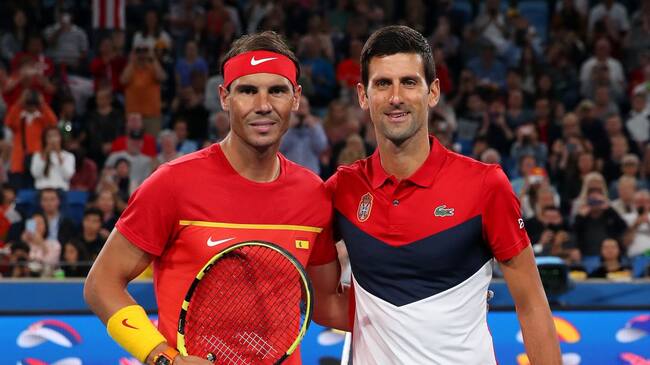 Rafael Nadal (izq.) junto a Novak Djokovic (der.) en un partido de la ATP Cup 2020.(Getty Images)