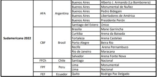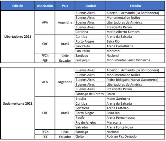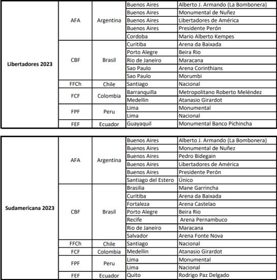 De momento, para este año, la final de la Libertadores se celebrará en el estadio Maracaná de Rio de Janeiro y de la Sudamericana en el Mario Alberto Kempes de Córdoba.