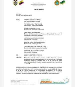 Frente a todo esto el Gobernador del Amazonas, Jesús Galdino envió el pasado lunes 11 de mayo un memorando a 8 de sus funcionarios, en el que les pide revisar cada uno de los contratos celebrados en el marco de la emergencia sanitaria del COVID.