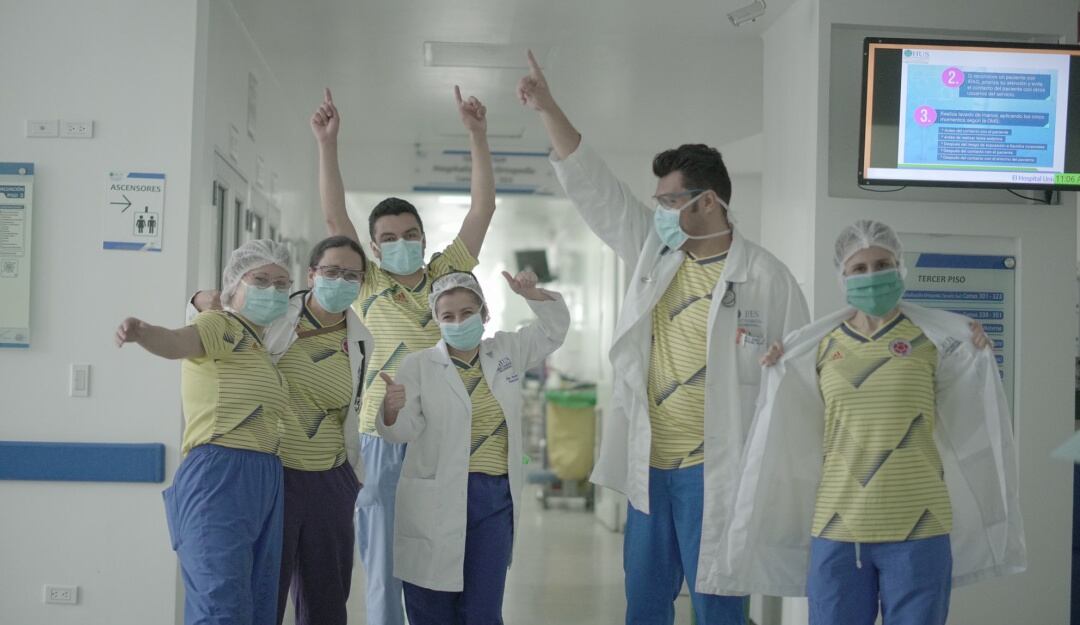Los Médicos y enfermeros que aparecen en el video recibieron los mensajes de los jugadores y las camisetas de la Selección Colombia.