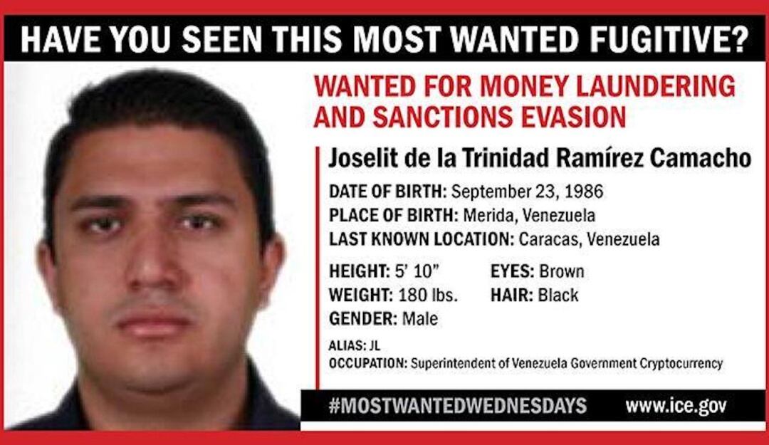 La recompensa se ofreció por Joselit Ramírez Camacho, superintendente de criptoactivos de Venezuela.