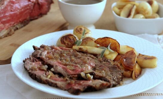 - Una vez cocinado el rosbif, dejarlo reposar envuelto en papel aluminio por 20 minutos, con el fin de no perder los jugos y se incorporen a la carne, además, así será más fácil de porcionar.