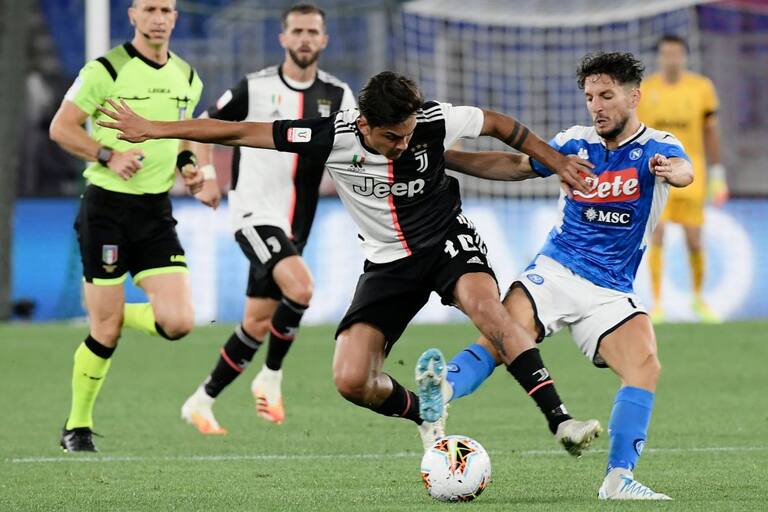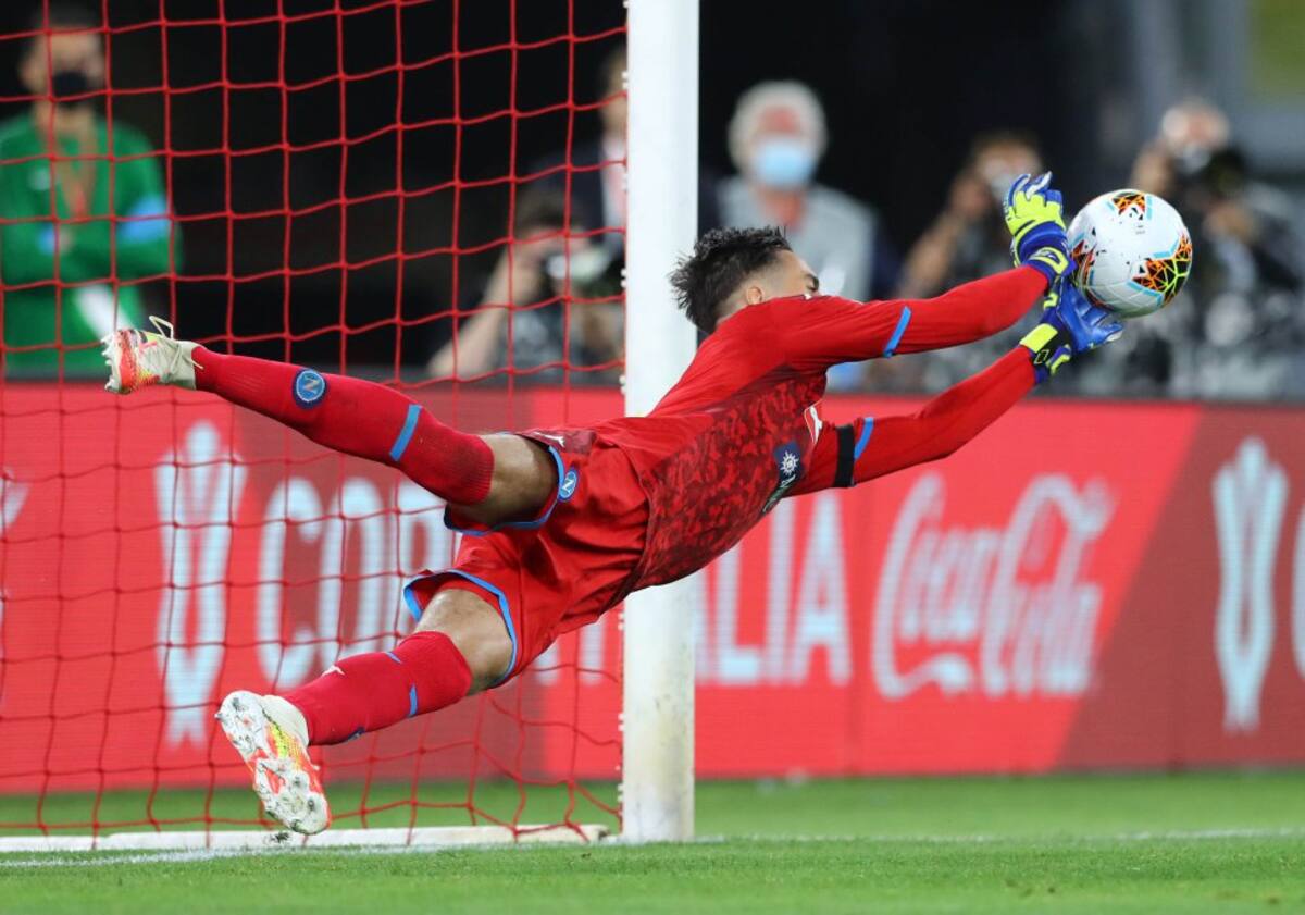 Alex Meret, sustituto de David Ospina, quien se perdió el partido por acumulación de tarjetas amarillas, protagonizó una importante atajada a Dybala en los penaltis.