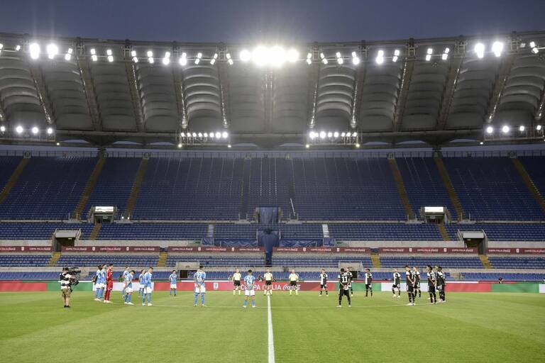 El habitual minuto de silencio en la previa de los partidos por las víctimas de la COVID-19 en Italia. Esta acción se repetirá en los partidos venideros de la Serie A.