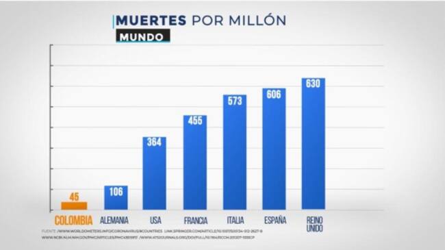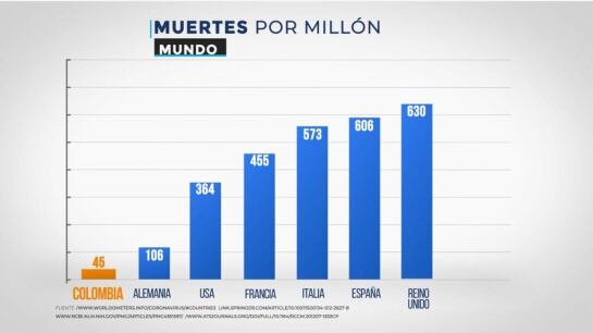 De acuerdo con los más recientes datos entregados por el Ministerio de Salud y el Instituto Nacional de Salud, en Colombia han fallecido 2.404 personas por COVID-19, que representan 45 muertes por millón de habitantes a nivel Latinoamérica, por debajo de Panamá (121); México (175); Chile (236); Brasil (241); y Perú (250). Cifras que revelan una letalidad del 3.2%.