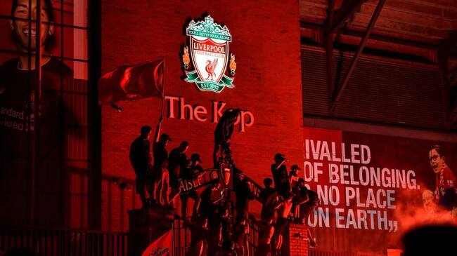 La celebración de los hinchas del Liverpool por el título en la Premier League.
