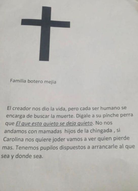 Según la colectividad, Carolina Giraldo ha recibido 3 amenazas en las últimas horas