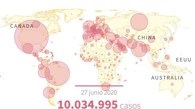 La pandemia de coronavirus, que este domingo 28 de junio, superó los 10 millones de contagios en el mundo, sigue expandiéndose de forma acelerada, sobre todo en América Latina y Estados Unidos, que concentra un cuarto del total de los casos.