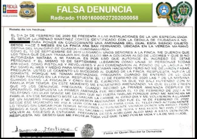 El 24 de febrero, 12 días después del allanamiento a la finca Haras de San Fernando, en Guasca, Cundinamarca, ese día le dijo al ente acusador que: "en septiembre de 2019, llegaron unos señores a la finca. dijeron que los tenía que dejar trabajar ahí. Que ellos iban a colocar algo de licores y que si no autorizaba, mataban a su familia", sin embargo, una llamada interceptada al mayordomo Laureano Martínez Cortés el día del allanamiento comprobaría que su declaración habría sido parte de un plan.