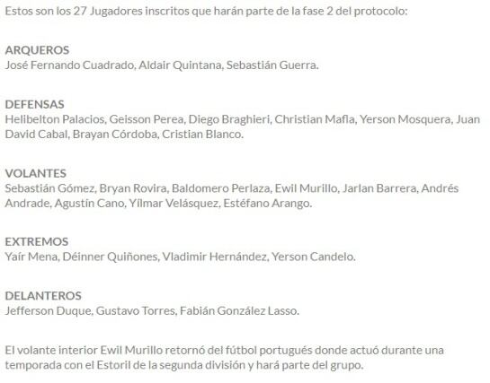 Nacional informó los 27 jugadores inscritos para hacer parte de los entrenamientos en esta nueva fase del protocolo.