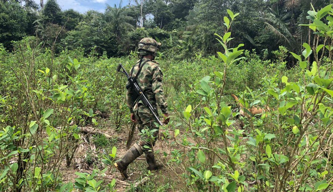 Los soldados vienen adelantando labores de erradicación en los cultivos, para que estos sean reemplazados con proyectos productivos.