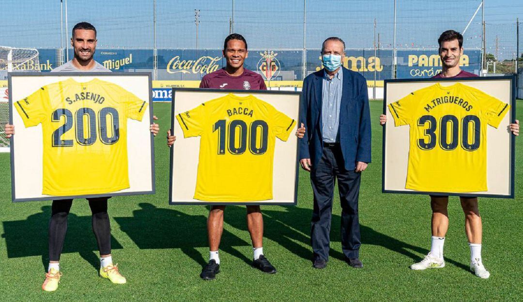 El Villarreal español ha rendido este sábado homenaje al jugador colombiano Carlos Bacca y a los españoles Sergio Asenjo y Manu Trigueros, que esta temporada han alcanzado una cifra centenaria de partidos con el equipo, en la que el colombiano Bacca ha superado los cien, el guardameta Asenjo los doscientos y Manu Trigueros los trescientos.