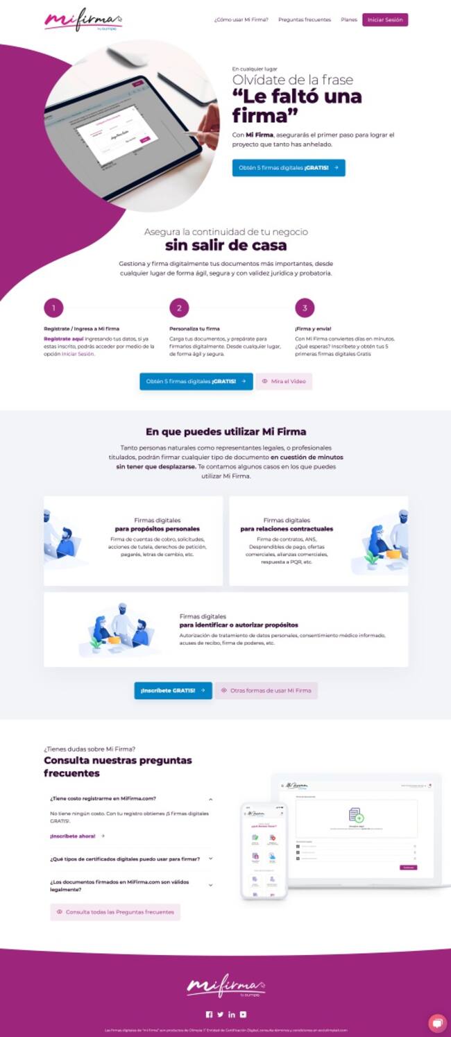 Los ciudadanos que quieran su firma deberán ingresa a www.mifirma.co; allí podrán registrarse y seguir las indicaciones de la plataforma, la cual está habilitada para cualquier dispositivo celular o computador.
