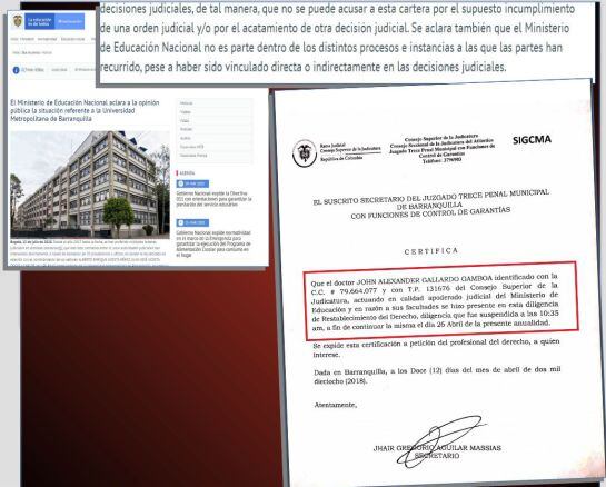 El Ministerio de Educación, desde 2018, se ha negado a dar cumplimiento a una orden del Juzgado 13 de Garantías de Barranquilla, que exige dejar sin efecto la resolución que aprobó la reforma de los estatutos de la U. Metropolitana, y que, al aparecer de manera irregular dejó en manos de los Acosta Osio y de sus amigos políticos, la administración de ese centro educativo.
