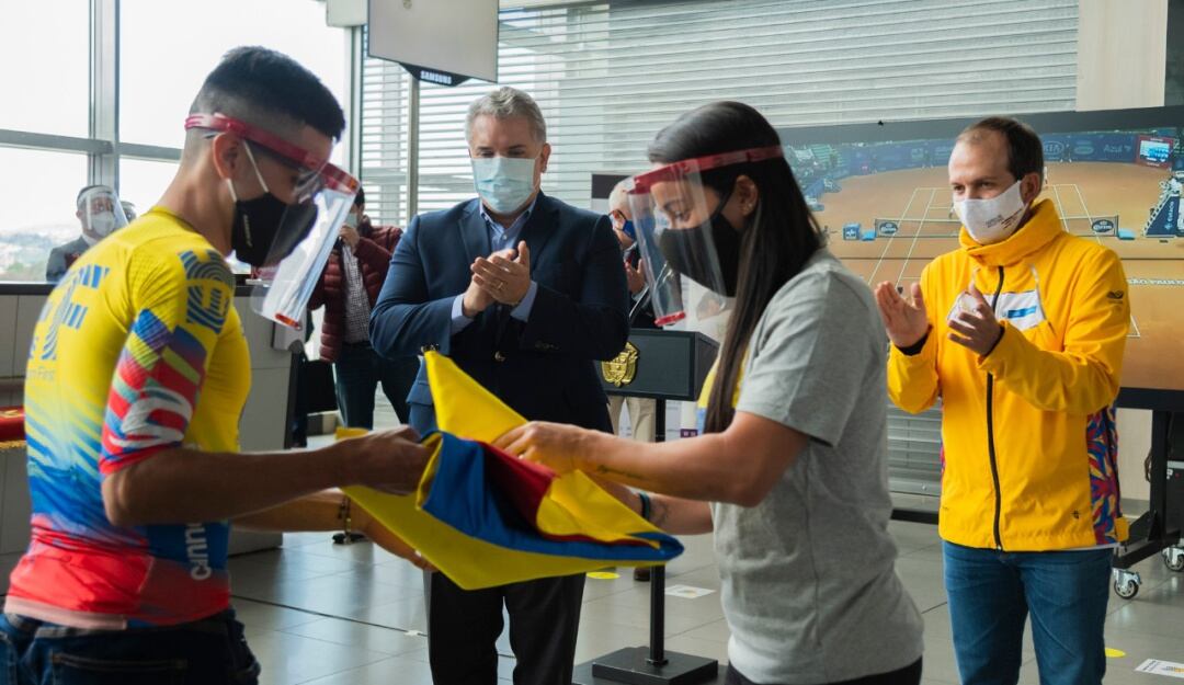 "El solo hecho de verlos a ustedes retomar sus actividades, de verlos con esas ganas llegar a esas jornadas que nos esperan, son un aliciente y una motivación para todo un país", señaló Duque desde el Aeropuerto Internacional El Dorado a los deportistas.