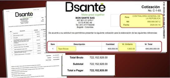 En ese paquete de documentos solo se adjunta una cotización de BON SANTE SAS, en la cual se lee que es el mismo valor del contrato, $722.152.928. Según la oficina de prensa de la Contraloría, lo que está en esa cotización fue lo que se adquirió.