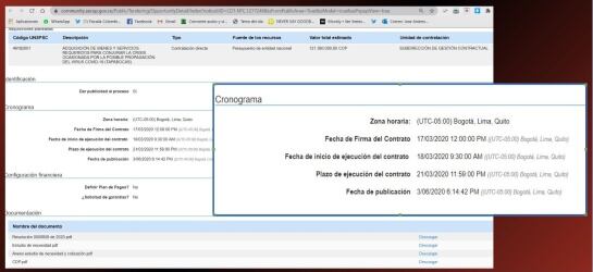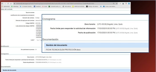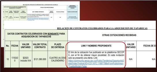 También indica que "con el fin de obtener pluralidad de oferentes, la solicitud de cotización se publicó en el SECOP II". Consultado ese portal de contratación, se confirmó a Caracol Radio que el límite para responder la solicitud fue el 17 de marzo de 2020 a las 6:00 pm. La publicación de la oferta fue el mismo día, a las 5:00 pm.