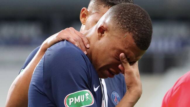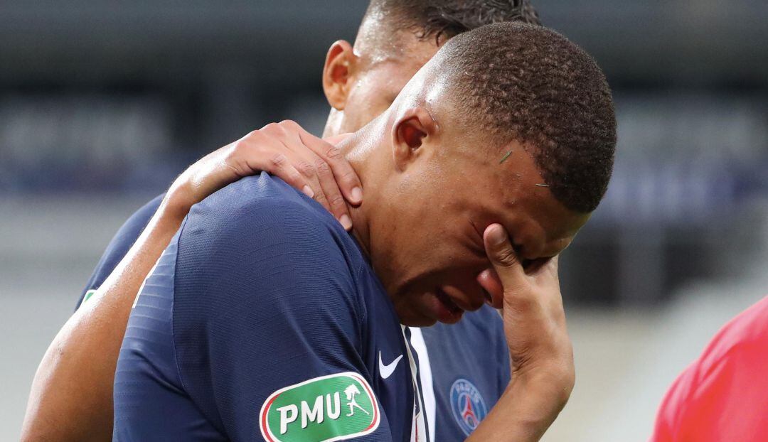 Kylian Mbappé abandono el terreno de juego en la final de la Copa de Francia con el PSG ante el Saint Etienne, tras sufrir una dura entrada a los 31 minutos de partido por parte del experimentado Loïc Perrin.