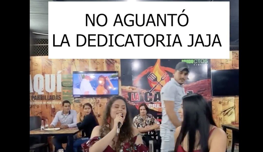 Una situación divertida quedó inmortalizada en video. Una mujer se encontró en un bar a su exnovio quien estaba con su actual novia, ante esto, la mujer decidió dedicarle una canción en medio del karaoke.