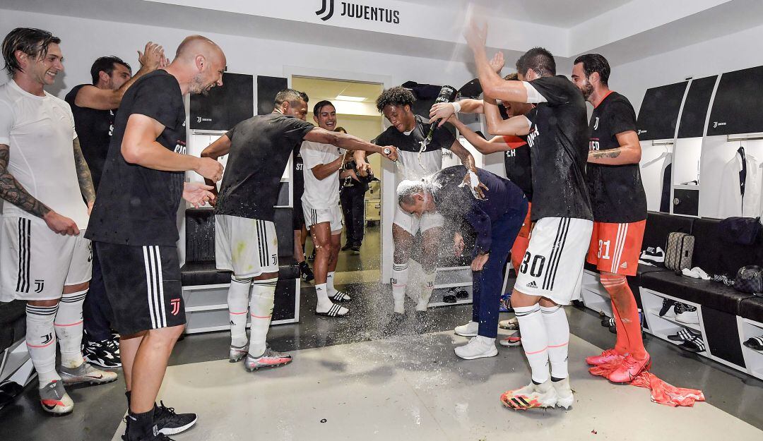 A través de las redes sociales, Juan Guillermo Cuadrado compartió algunos videos donde se ve como los jugadores, cuerpo técnico y dirigentes de la Juventus celebran un nuevo título en la Serie A.