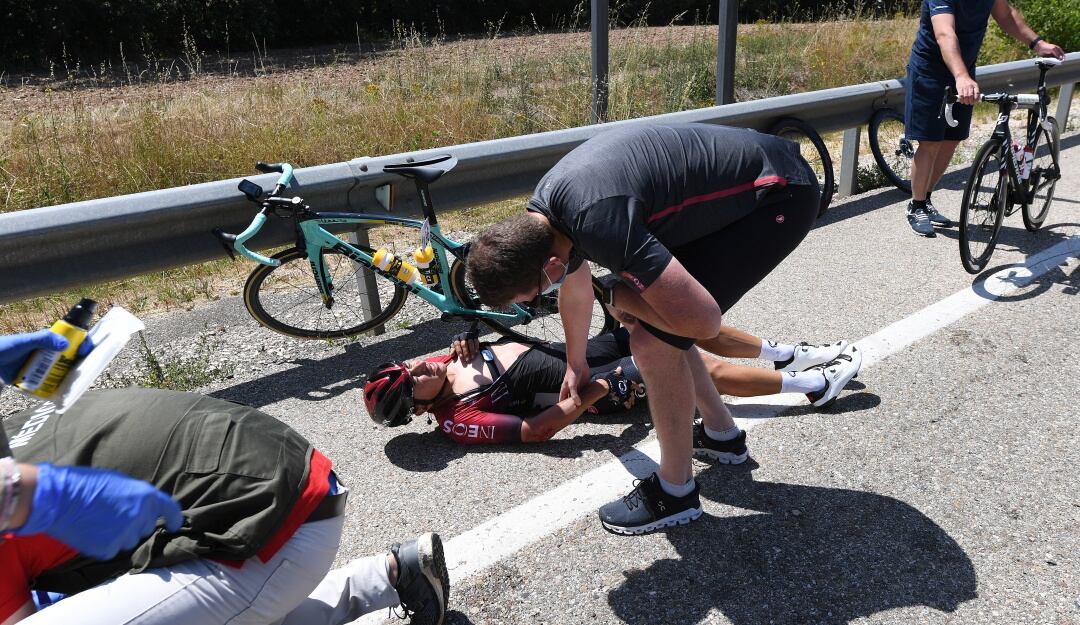 El Ineos publicó el parte médico de su corredor, determinando que sufrió una dislocación en el hombro derecho tras el fuerte impacto.