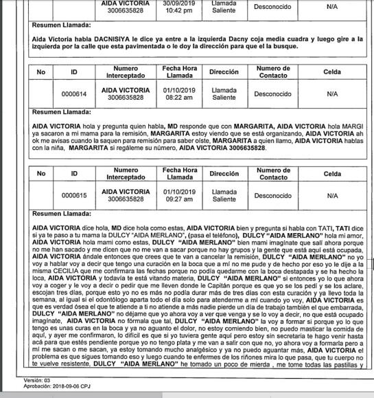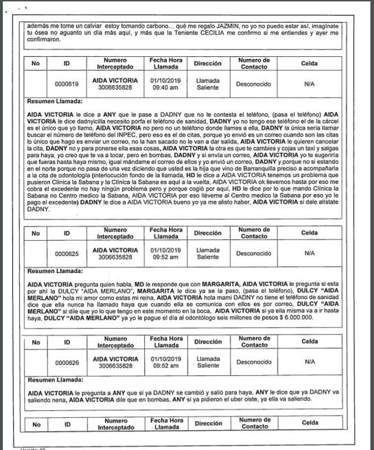 Las llamadas entre Aída Merlano y su hija el día de la fuga