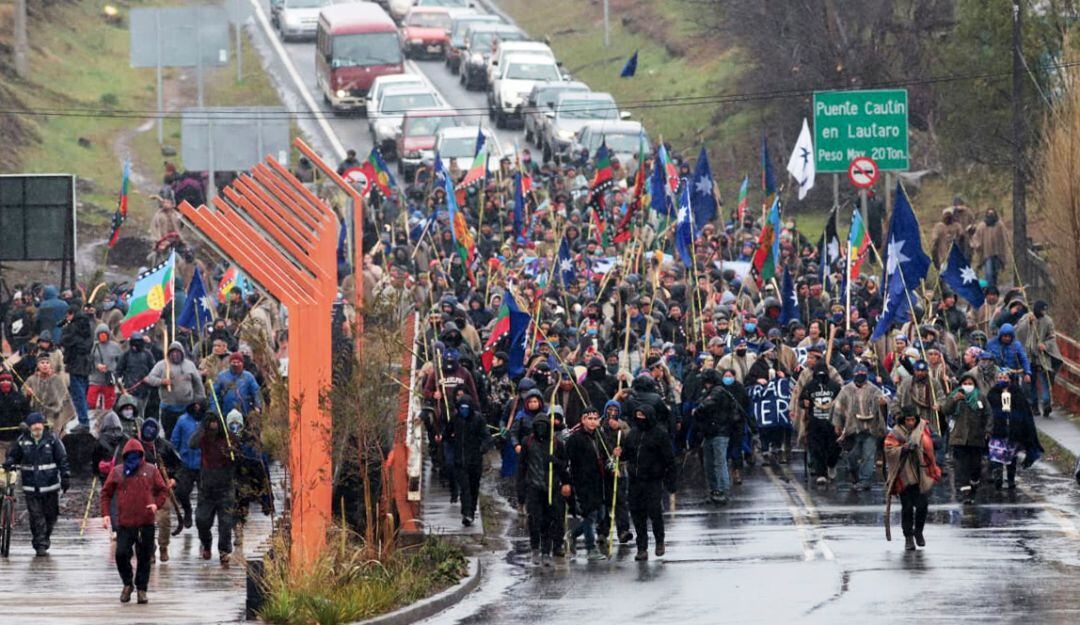 La manifestación apoyaba a la comunidad mapuche, actualmente inmersa en una escalada de violencia en el conflicto que durante años desarrollan frente a las autoridades chilenas por la disputa de los territorios considerados ancestrales y actualmente explotados por empresas de la industria maderera en el sur del país suramericano.