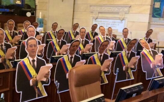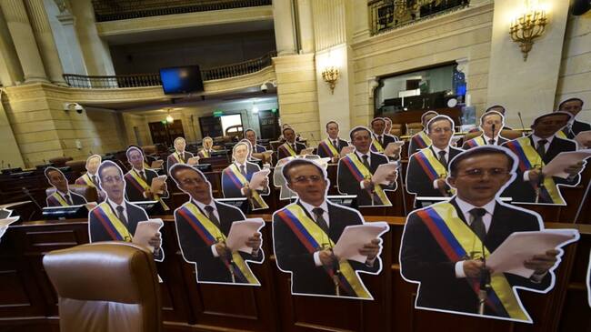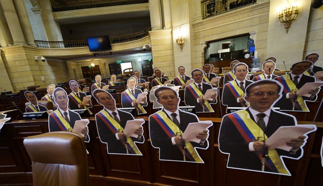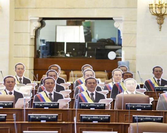 Siluetas de tamaño real del expresidente fueron ubicadas en la Cámara de Representantes, en medio de la elección del nuevo Defensor del Pueblo