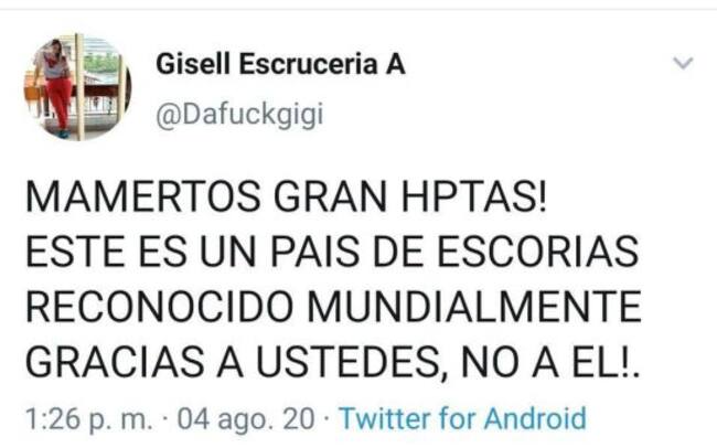 Guisell Escrucería, quien se identifica en Twiter como @Dafuckgigi, publicó que los muertos "bandidos" daban igual, mientras que el atentado a una patrulla de la Policía sí importaba.