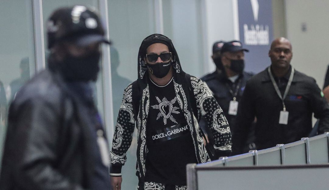 Ronaldinho Gaúcho, usando tapabocas, caminó entre fotógrafos, camarógrafos y reporteros sin responder a ninguna pregunta e ingresó en un vehículo particular que lo esperaba.