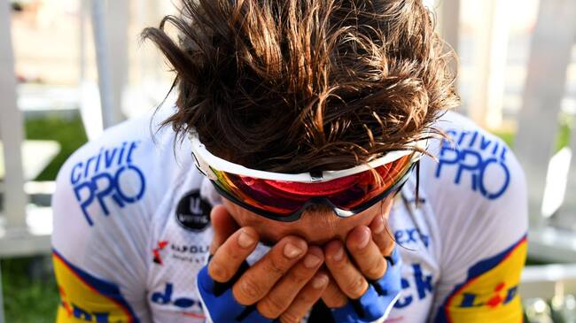 Apenas cruzada la línea de meta de Niza en cabeza, poco antes de enfundarse el maillot amarillo por decimoquinta vez en su vida, Julian Alaphilippe se derrumbó en lágrimas, víctima de mil emociones que se agolpan en su mente.