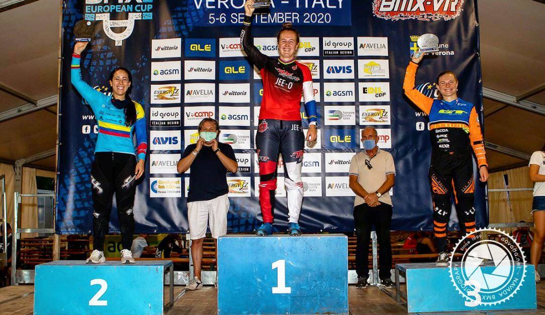 La bicicrosista se colgó la medalla de plata en la Copa Internacional que tiene como sede Italia.