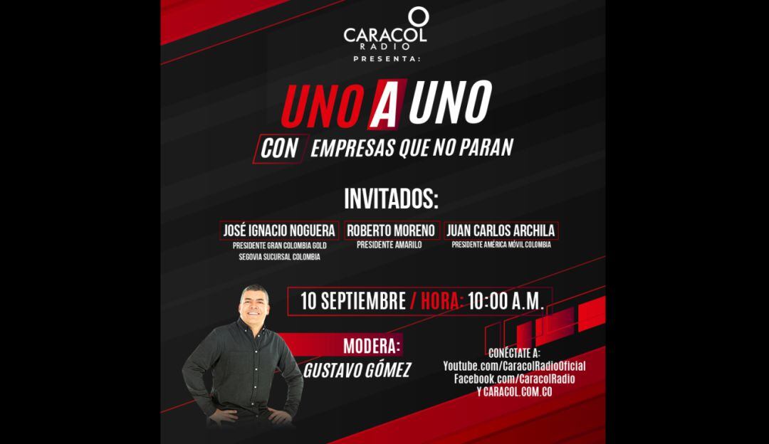 En diálogo Uno a Uno de Caracol Radio, con Gustavo Gómez, José Ignacio Noguera, vicepresidente de asuntos corporativos y sostenibilidad de Gran Colombia Gold; Roberto Moreno, presidente de Amarilo; y Juan Carlos Archila, presidente de América Móvil Colombia; hablaron sobre cómo las empresas continuaron funcionando durante la emergencia que vivió el país a causa de la pandemia.