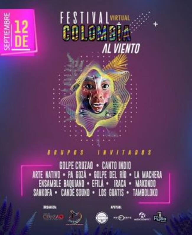 Este sábado 12 de septiembre desde las 8:00 de la noche 14 agrupaciones folclóricas colombianas se presentarán en el primer Festiva Colombia al Viento. La transmisión será mediante la plataforma Facebook.com/FestivalColombiaAlViento.