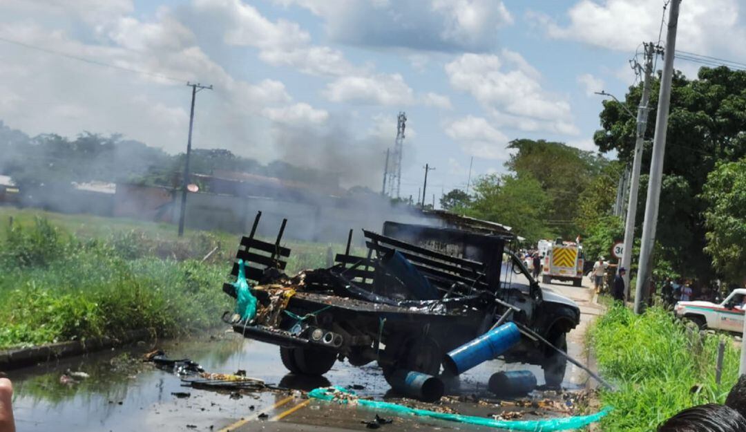 Un carro cargado con cilindros bomba se activó en vía de acceso al municipio de Arauquita en el departamento de Arauca.