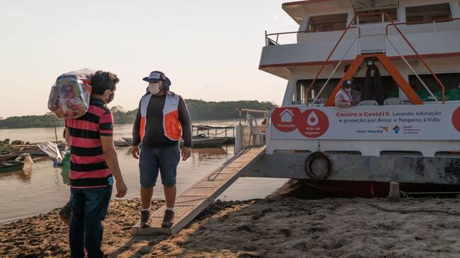 El barco-hospital ‘Solidaidad’ entregará al menos 4.700 paquetes de ayudas humanitarias con alimento, kits de higiene y elementos de seguridad, en una unión Brasil y Colombia para llegar a las comunidades más remotas de la amazonía.