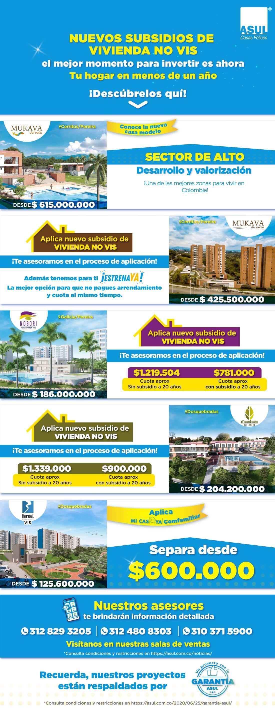 Con los subsidios no VIS invierta en los proyectos de Asul Casas Felices.