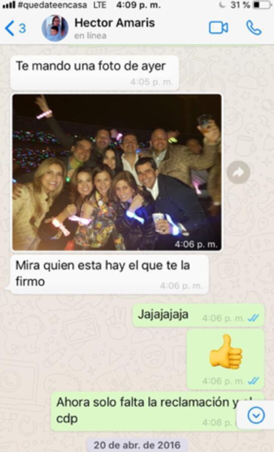 Ese dinero fue entregado en dos partes, la primera a Héctor Amaris, alias 'el oso Yogui” a quien se le conoce por su cercanía con Álex Char. En los chats de 2016 y 2017 se evidencia que Héctor Amaris hace referencia al exalcalde de Barranquilla para decirle a Luis Enrique Guzmán que en esa foto tomada el 14 de abril de 2016 se encuentra quién le firmó el contrato.