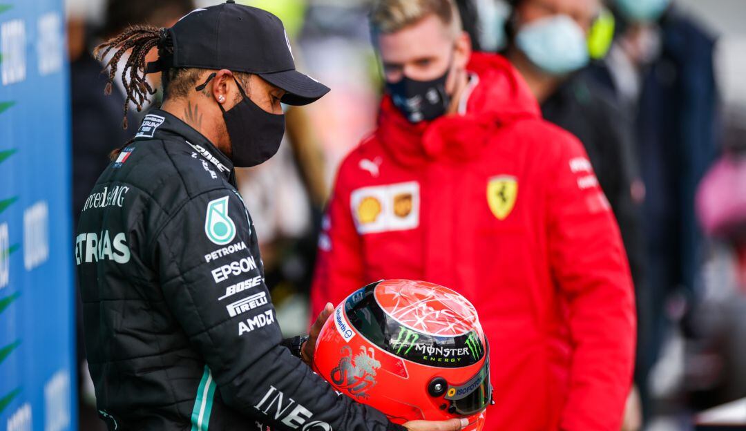 Mick Schumacher regaló un casco de su padre al piloto británico.