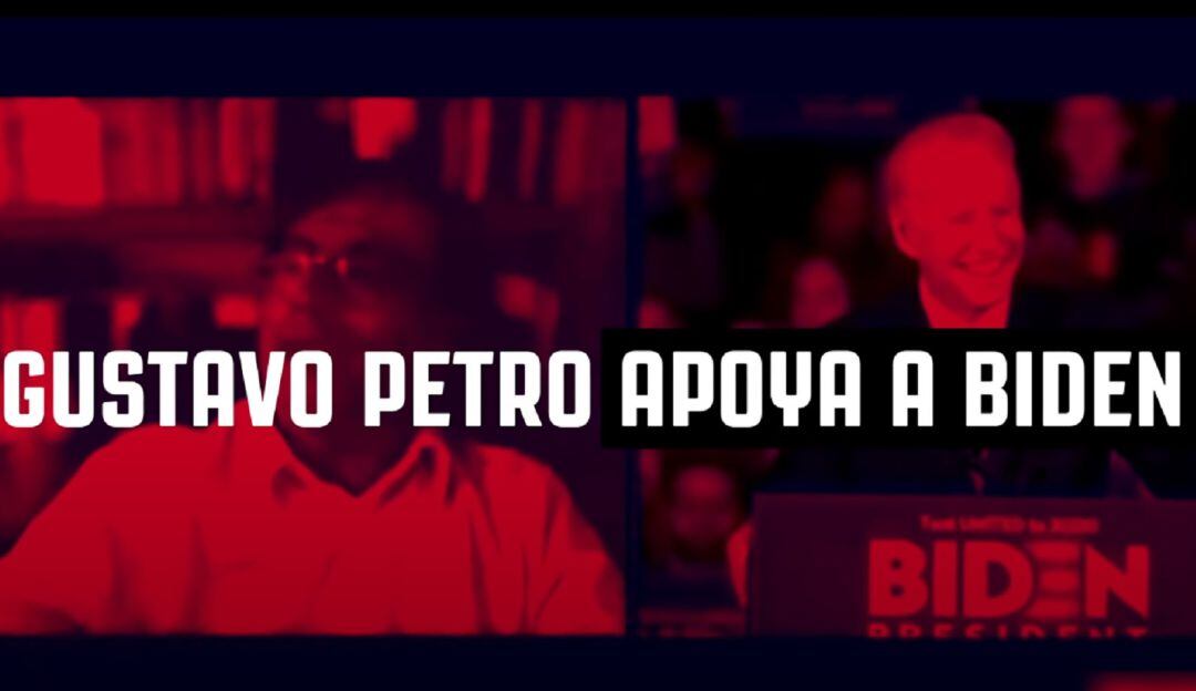 En este mismo video se muestra un video en el que Petro dice "Yo votaría por Biden, sin lugar a duda". Las declaraciones están acompañadas de un filtro rojo y unas imágenes de Biden en campaña.