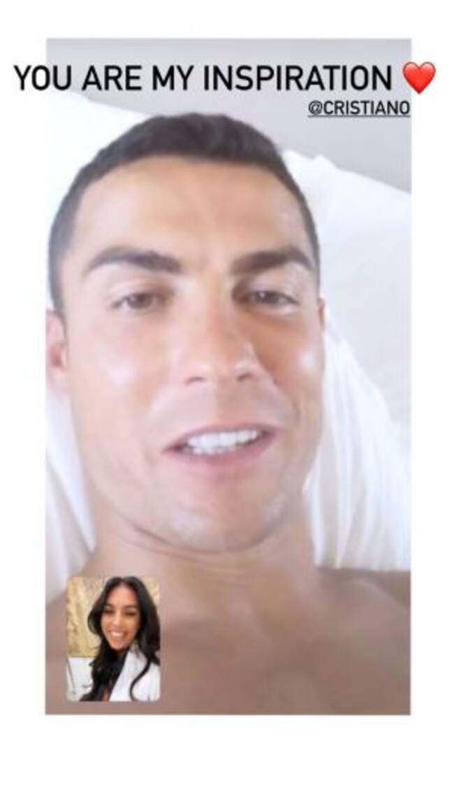 Georgina Rodríguez, novia de Cristiano Ronaldo, subió a sus historias de Instagram un pantallazo de una videollamada que sostiene con la estrella portuguesa en la que le da una voz de aliento en este difícil momento.