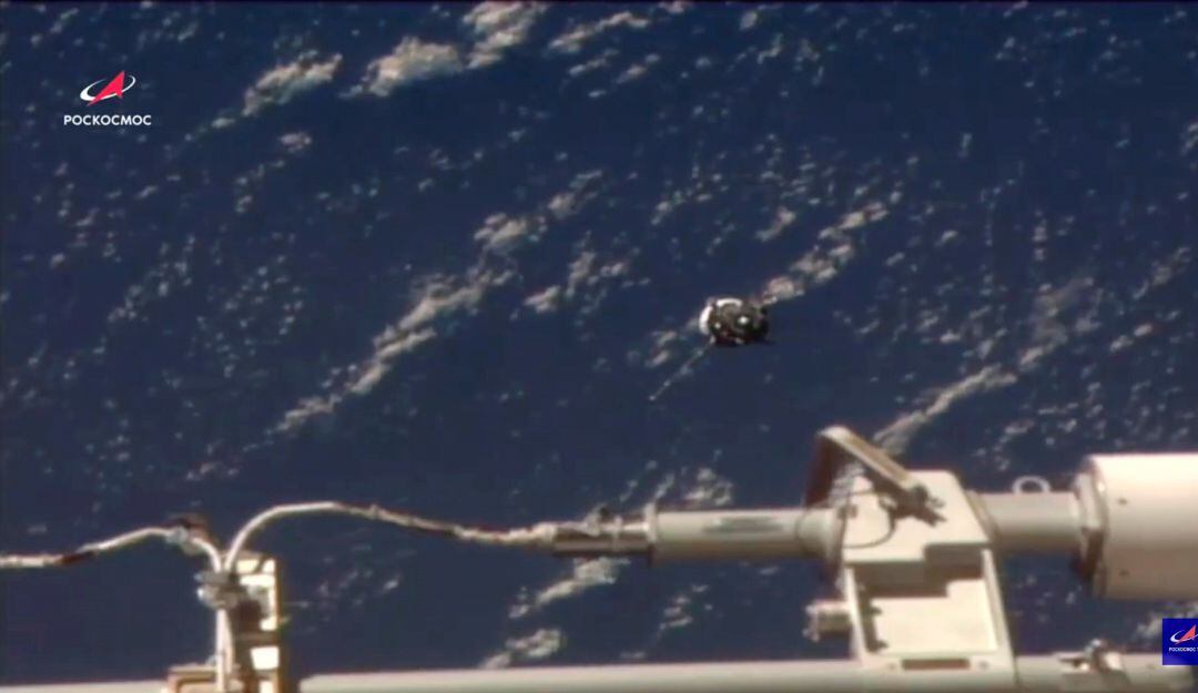 Una nave Soyuz con los cosmonautas rusos Serguéi Ryjikov y Serguéi Kud-Svershkov y la astronauta estadounidense Kathleen Rubins a bordo se ha acoplado este miércoles a la Estación Espacial Internacional (EEI) en un tiempo récord, tan solo 3 horas después del despegue.