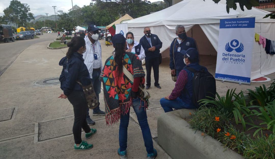 La Defensoría del Pueblo, en su labor de acompañamiento a la movilización de la minga indígena en Bogotá, instaló una carpa de los derechos, en el Palacio de los Deportes (en Bogotá) conformada por un equipo de 34 funcionarios, cuatro vehículos, para la recepción, seguimiento y atención de las quejas suscitadas en el marco de la protesta social.