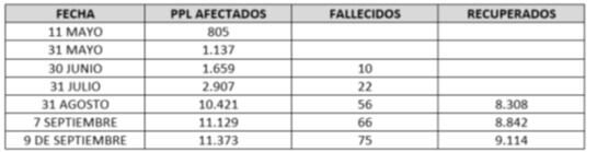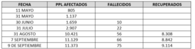 Número de contagios y recuperados en las cárceles