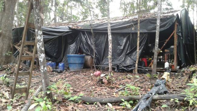 De hecho, de acuerdo con información de inteligencia suministrada por las Fuerzas Militares, el laboratorio contaba con un área campamentaria para albergar aproximadamente 55 personas, que podrían desarrollar las labores ilegales de procesamiento.