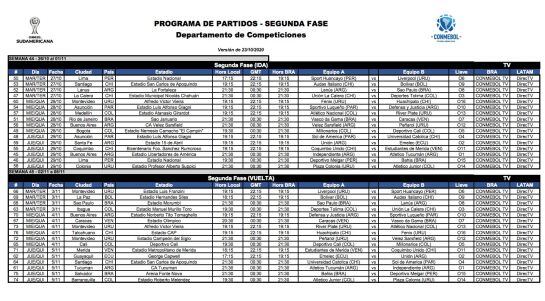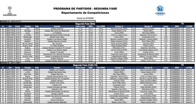Luego de la realización del sorteo de la segunda ronda de la Copa Sudamericana, donde habrán cinco equipos colombianos, Conmebol confirmó la fecha y hora de los encuentros.