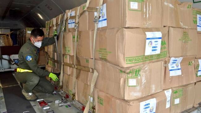 El cargamento fue transportado por el avión Júpiter de la Fuerza Aérea Colombiana.