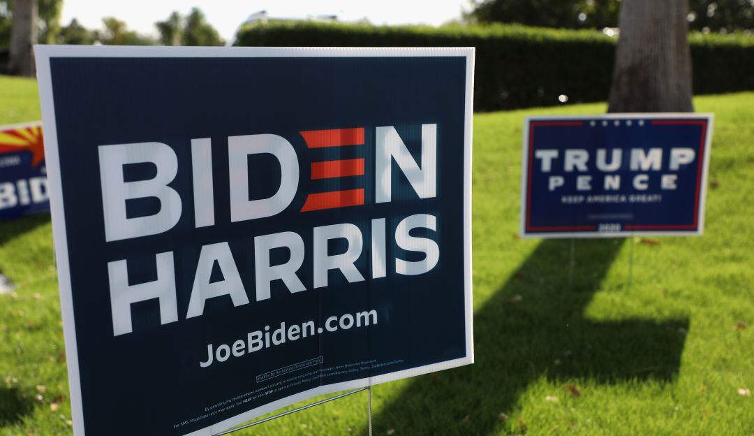 Con megáfono y a una distancia prudente de los simpatizantes, el candidato demócrata Joe Biden dijo: “tenemos una enorme oportunidad como país (...) No me refiero solo a que me elijan, si me eligen, seré presidente estadounidense. No habrá estados rojos ni estados azules, solo los Estados Unidos”.